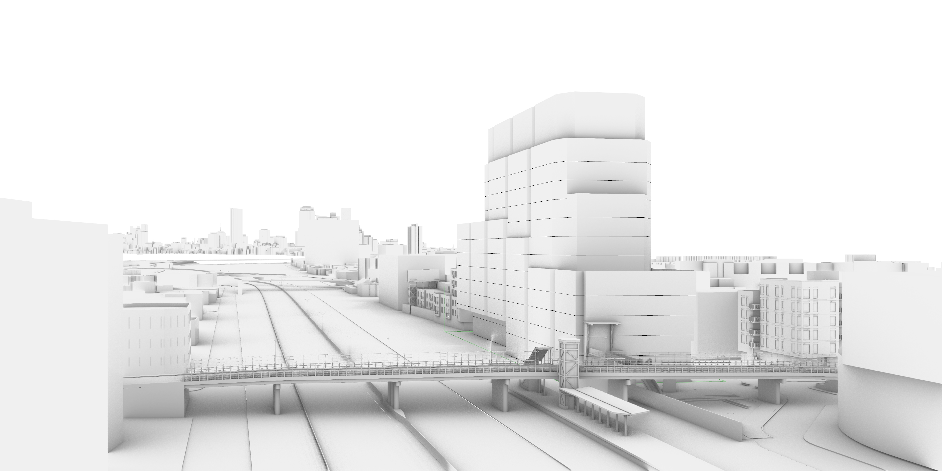 Street, connecting the commuter rail platform to the Lower Allston neighborhood. Well-placed ramps and