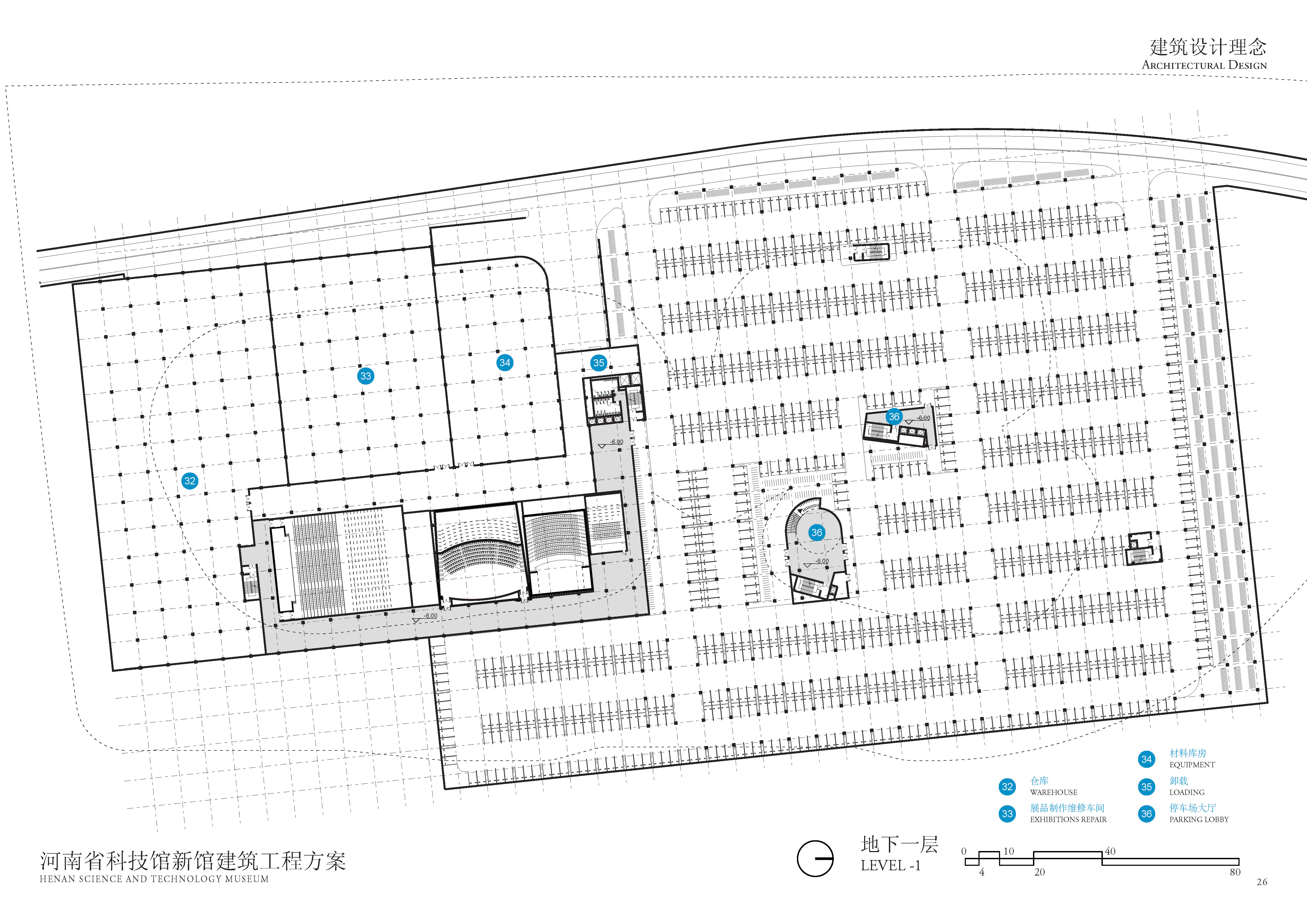 permanent and temporary exhibition halls, 1,000 seat auditorium, library,