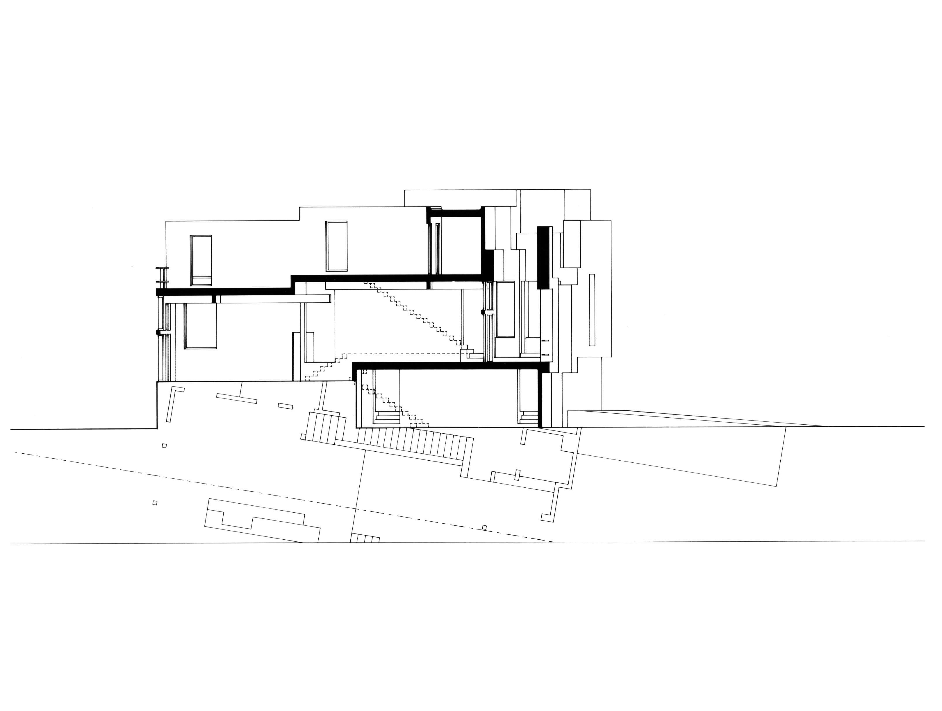 The volumes that compose this house are derived from a process of scaling, displacement and mutual intersection. The fenestration patterns behave in accordance with their positions on the volumes, the imperative to group into larger unifying systems of symmetry and the requirements of interior rooms.